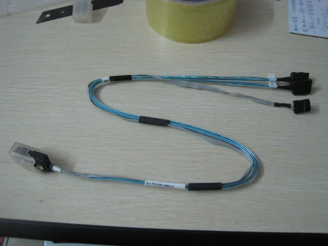 新到安费诺Amphenol给SUN公司服务器代工的 MiniSAS线转2*sata线百余条,P/N码:530-3962-01。长度约50cm,全新带包装,国外卖80美元以上,店里冲双冠特价出,有量可批,价格再议。适用于标准SFF8087(36P)miniSAS接口转接标准sata硬盘,带一根电压检测线(普通设备用不到,sun服务器用的),实拍图,sas线种类繁多,如果不懂可咨询店主~