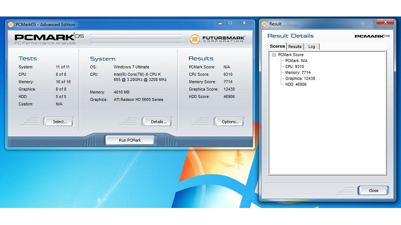 PCMARK05選擇所有測試選項,HDD的評分高達46906分。