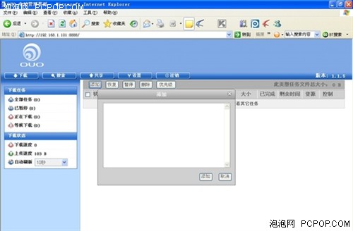OUOIboxNAS10支持BT、电驴下载,用户只需将种子或者链接填入相应的位置上,OUOIboxNAS10就会自动开始下载。