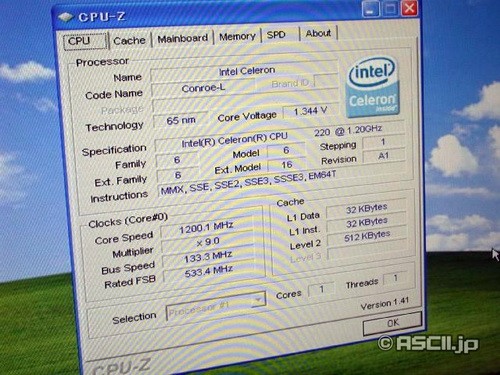 板载的CPU从时钟频率1.33GHz,FSB533MHz的Celeron 215,升级为全新的Celeron 220,不过这颗CPU还不是英特尔正式发售的产品。