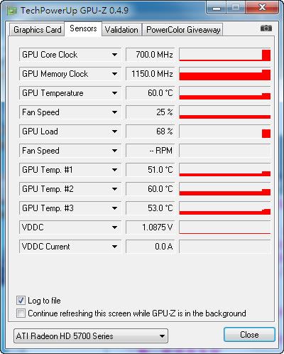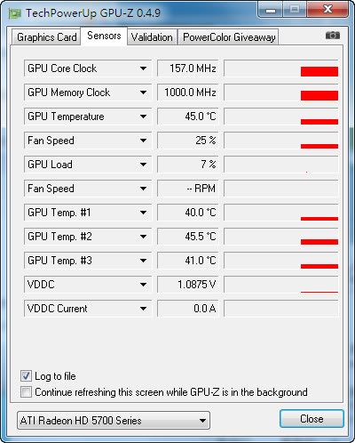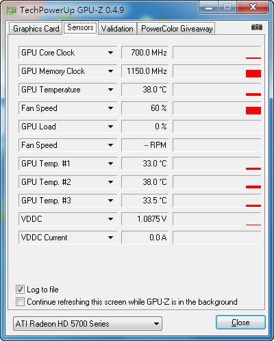 小球测试的温度很惊人,仅比闲置的时候多3度,v400的散热效率能完美压制hd5750这个级别的显卡发热。
