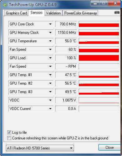 原风扇的速度调至60%,跑furmark测试,这时候风扇的噪音相当大了。