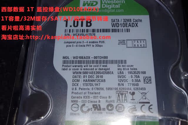 新绿盘上市!SATA3接口 自选高清只要445元!WD10EADX