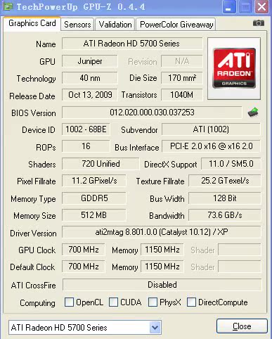 出盈通HD5750-hm1024GD5 极速版!12月18日入得卡,买来还不到一个月。成色95新以上,一尘不染!!!