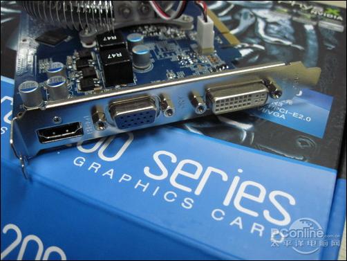 接口方面,显卡提供了HDMI,同时还提供了VGA和DVI,不仅更适合组建高清平台的玩家,而且适合普通玩家。笔者觉得,GT240在高清解码方面,支持两种格式全硬件解码,非常适合用来组建高清平台。再加上影驰是HDMI协会会员,提供的HDMI输出更有保障,这款GT240显卡还是非常值得考虑的。