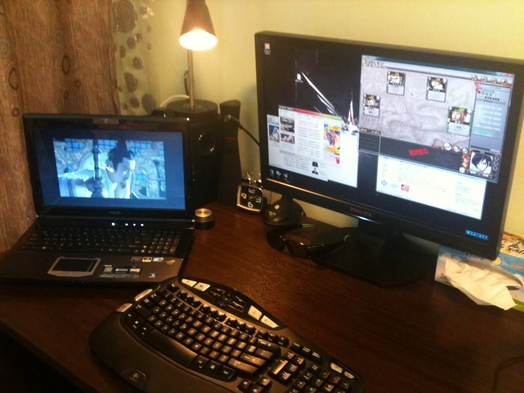 话说3D偏振眼镜玩游戏感觉很不错。不过显卡有点不给力。