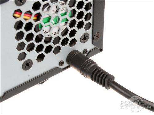 金翔 ITX 1601机箱的供电采用外置适配器提供,适配器采用欧式市电插头接入,输出为圆柱形接头。