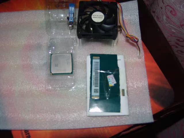 盒子已经不见了。但是盒子上的保修条形码还在!原装风扇也在!还有盒子里装CPU的塑料盒子也在!!