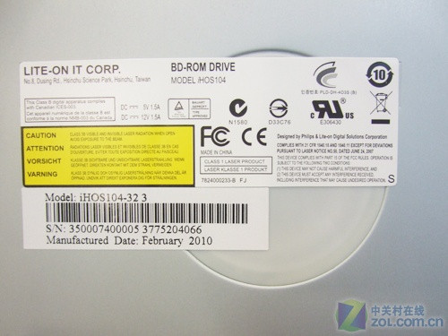 建兴iHOS104蓝光只读光驱铭牌