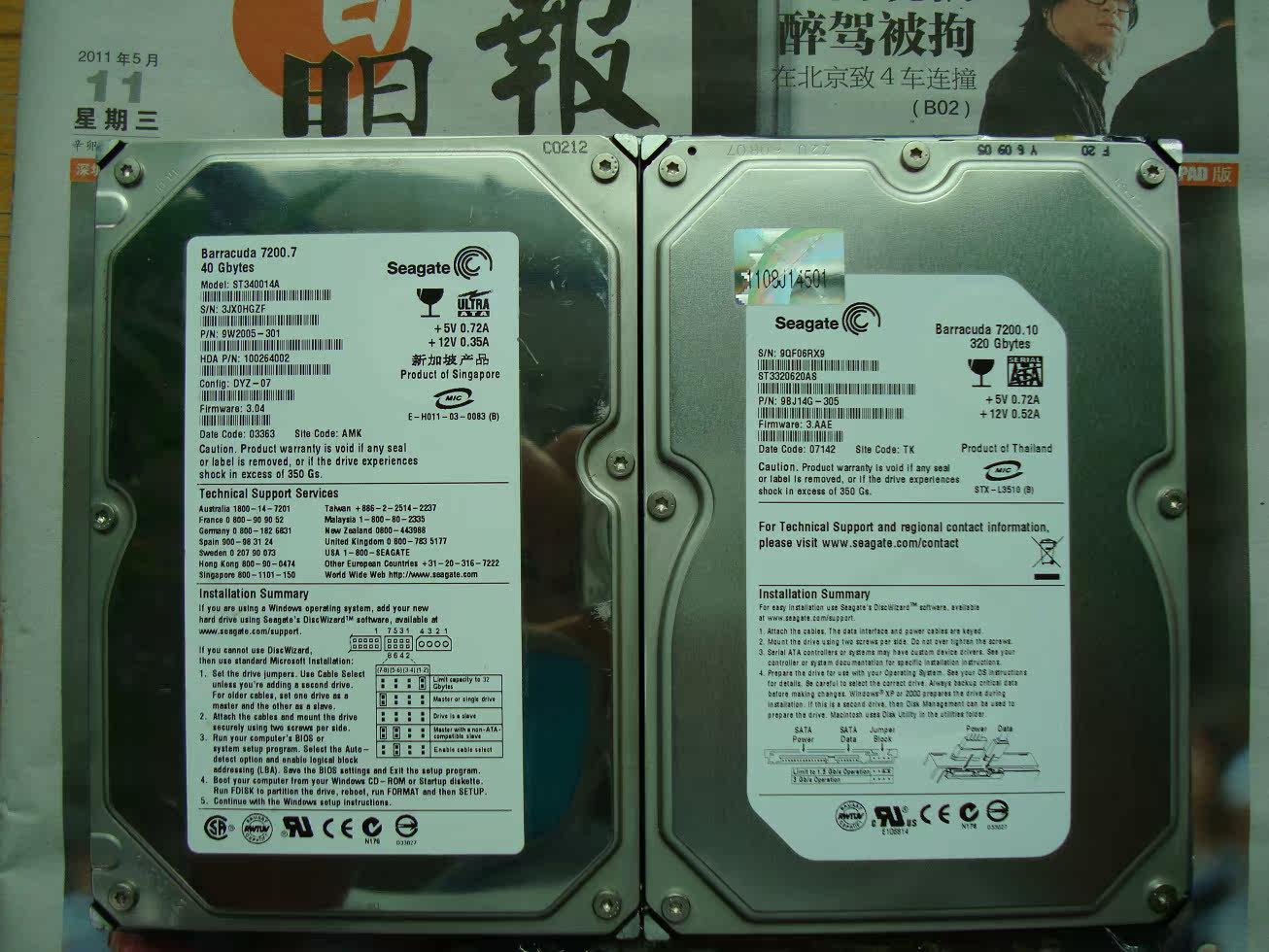 )和希捷7200.10 320G 16M SATA硬盘,无病无修,捆绑价270不包或300包快,送希捷7200.7 40G硬盘一个(