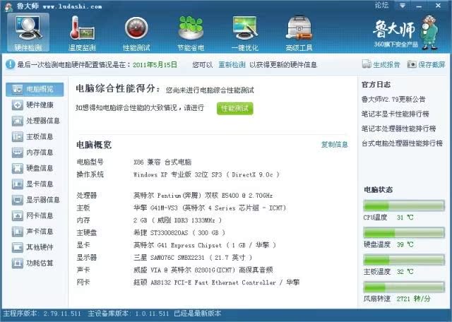 E5400+威刚2G DDR3+华擎G41+希捷300G硬盘+航嘉300W电源+普通机箱