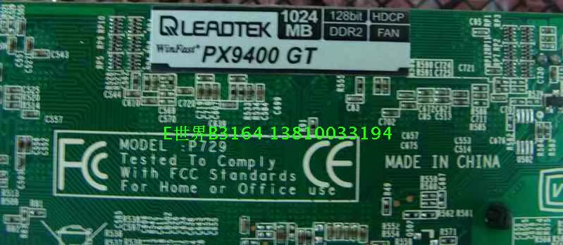 | 北京客户直接来店拿货,北京中关村E世界B3164 13810033194 丽台PX9400GT仙剑限量版 真正1G显存,128bit,全新工包保1个月,绝对丽台原厂出的,是高清游戏绘图必备选择!配一套矮挡板!基本参数 | |