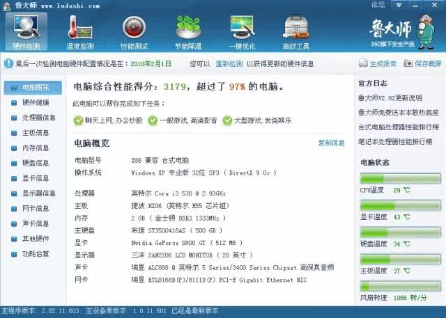 出I3 530+金士顿2G DDR3+希捷500G+9800GT+悍马HI06+长城300W+普通机箱+22寸液晶