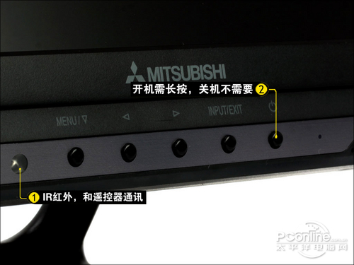 三菱 MDL231CV的主要OSD键在显示器中部,按键手感不错。上面“1”标注的就是IR红外,是和显示器的遥控器通讯的。