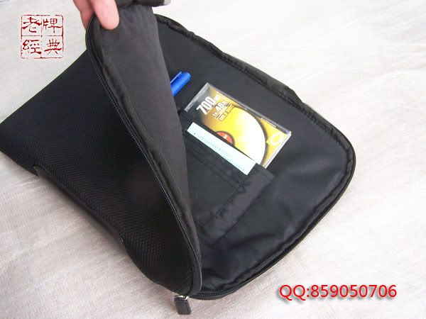 中间有好多格子,可以放很多小东西,如笔、mp3、钱之类的,甚至可以把电源适配器都一起放进去!