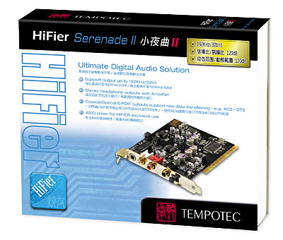 世界上首款真正支持32bit的声卡到来!TempoTec HIFIer系列的当红小生小夜曲重装上阵,除了和小夜曲一样,小夜曲II仍然坚持摒弃可能会对音质带来影响的录音功能外,这款经典的专门为台式机HIFI发烧友设计的声卡如今再次进行性能提升,采用更高性能的硬件规格,信噪比和动态范围都达到的目前电脑音频的极限水平;耳机功能进一步优化,石机耳放的设计思路能更加有效的增加各类高品质耳机的支持;更换式运放设计,可让使用者根据自己喜欢的音色去进行组建,现在终于众口可调了;增加的开关机保护电路也可以有效抑制开关机爆音带来的干扰。