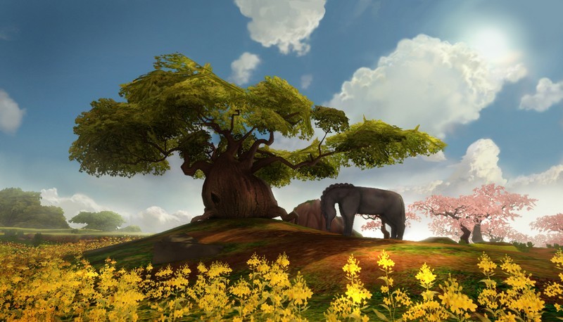 毕竟引擎不同啊,即使也是这种类似手绘的卡通风格,那种光影色泽的变换效果,可是比WOW自然真实多了。但话说回来,卡通风格的画面,自然真实不一定就胜过美工加工的效果。