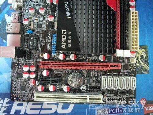 扩展部分,速能AE50 V14主板提供了1个PCI-E 2.0 x16独立显卡插槽,1个PCI-E x1插槽以及1个PCI插槽。硬盘接口部分,主板则是搭载了6个SATA 6Gb/s接口。