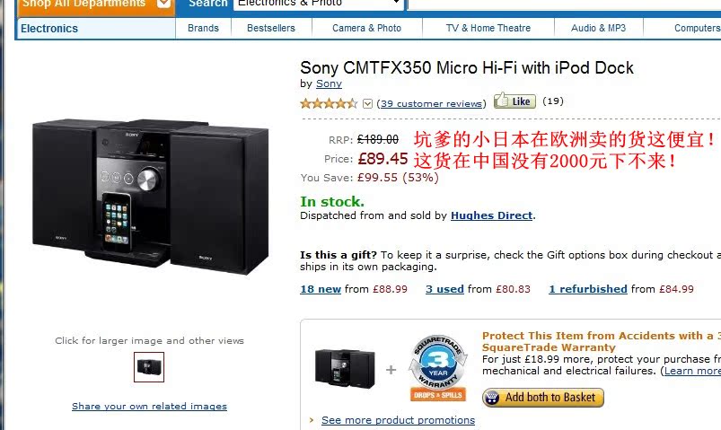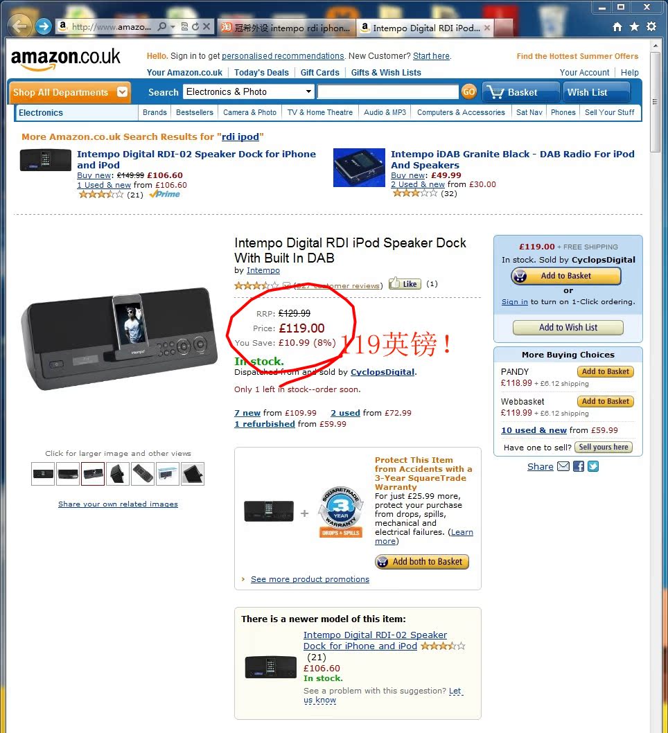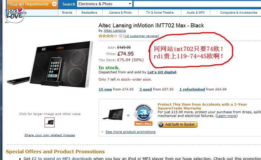 亚马逊英国网站上该款iphone音响售价为119欧!
