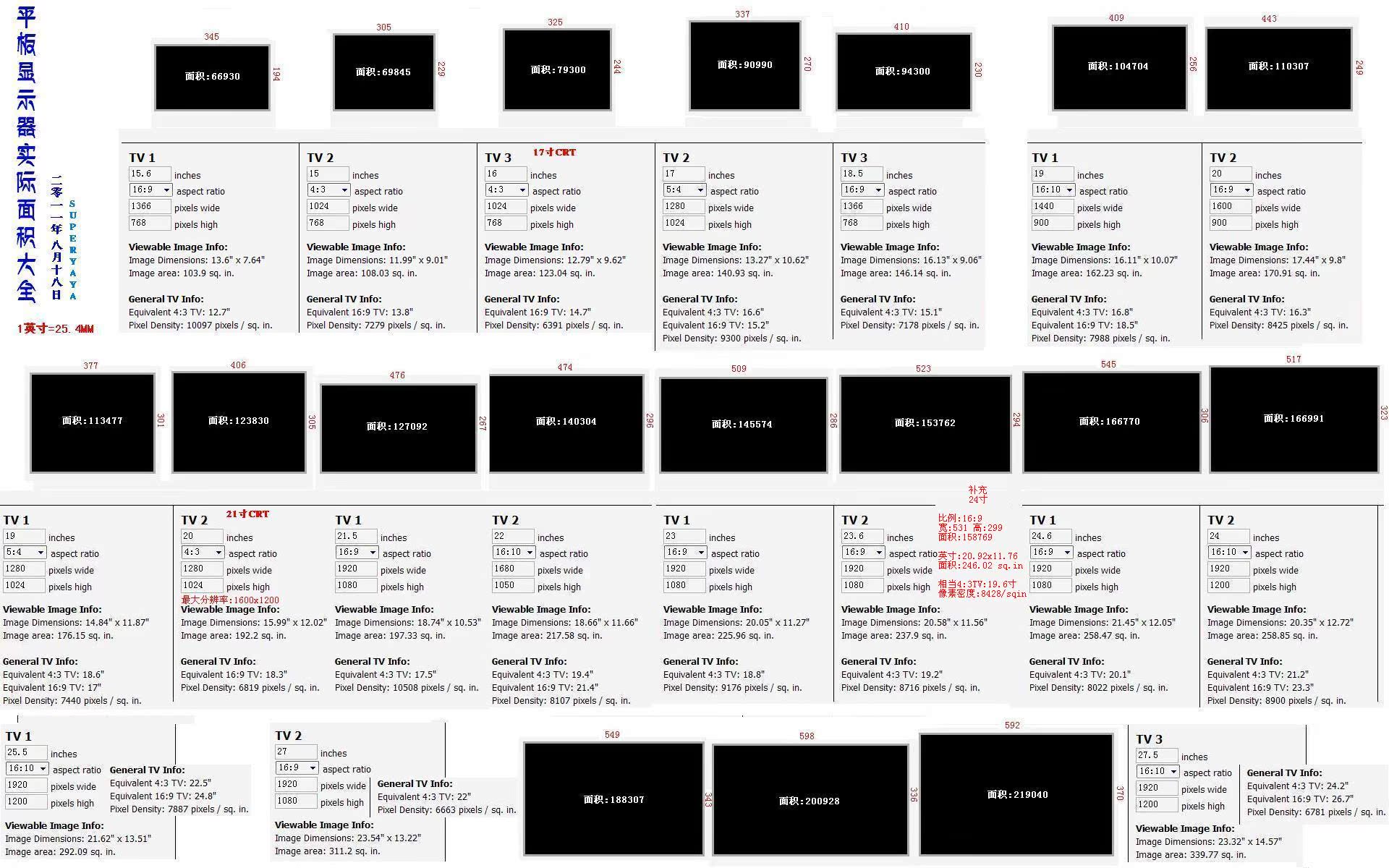 ★★★最近帮朋友们升级显示器,很多人都对液晶花样繁多的尺寸和比例搞得晕头转向,更有越升宽屏实际可用面积越小的尴尬,为了让大家有非常直观的各尺寸实际显示面积的体验,特制作一张1920*1200的平板显示器实际面积大全为大家释疑解惑!今后几年应该都可以收藏供升级备用......废话不多说,直接上成果吧!!★★★