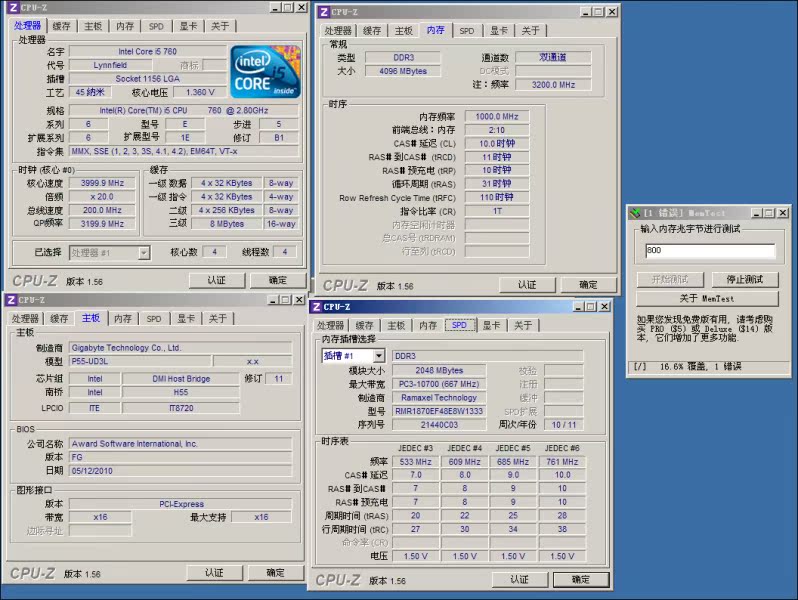 超频性能,大家都知道,超频性能取决于颗粒、PCB层数等,不是所以的内存都能超频,也不是能超频的内存均能稳定。下面我就发笔者用2G1333尔必达BFBG颗粒内存条超频图给大家看看: