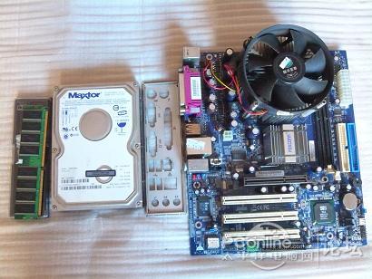 主板是富士康集成显卡的。CPU是CD2。8的 内存是金士顿512M的。硬盘是迈拓80GF的,酷冷至尊风扇