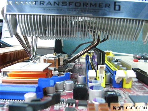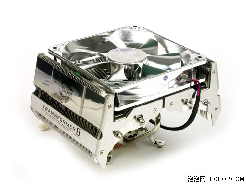 劲冷变形金刚6散热器使用了6根热管,不出意外应该定价在350块以上,市售散热器中高端产品使用6根热管的也不在少数,变形金刚6应该会是您首先注意到的,因为他的外观实在很炫。对于6热管散热器来说,性能表现比较好,在超频+加压的95W[url=]处理器[/url]满载时温度一直控制在60℃以下。