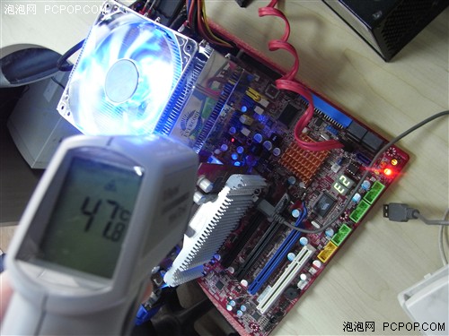 我们还测量了主板上MOSFET的温度,因为是下吹式,所以在CPU全速工作时,它的温度达到了47.8℃,对于下吹式散热器来说这是最大的优势:可以照顾到主板上元件的散热。