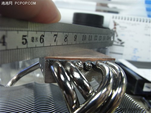 我们用钢尺比量了一下散热器底座的平整程度,没有凸起也没有凹陷。