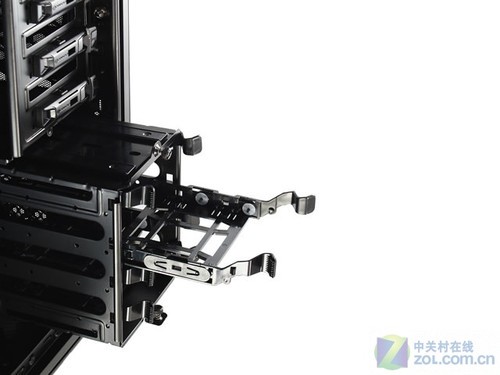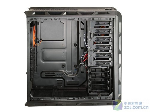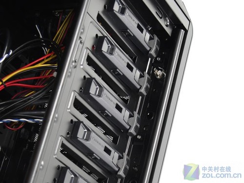 该机箱尺寸为523×514×223mm,拥有8个PCI槽,支持[url=]ATX[/url]及以下规格的主板。机箱拥有6个光驱位,4个硬盘位,硬盘位采用了先进的3.5/2.5寸共用设计,有效省去了安装SSD时的特殊附件。前置IO接口部分带有2个USB3.0,2个USB2.0,音频输入输出,2×3组风扇调速器,硬盘热插拔坞。机箱拥有非常完善的免工具安装以及防尘设计,拥有前置2个120mm进风、后部120mm出风,还可选配顶部2个顶部120mm出风,底部1个140mm进风,侧板1个140mm进风风扇,可以安装最大180mm的CPU散热以及305mm的显卡。