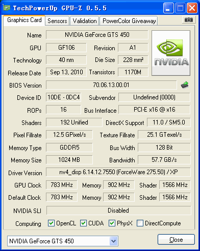 430元 想出一片影驰GTS450 DDR5 1GB的卡