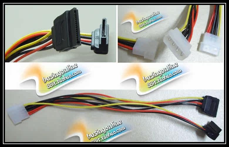 用途:将D型4针电源插头转换成两个SATA电源插头,使得没有SATA电