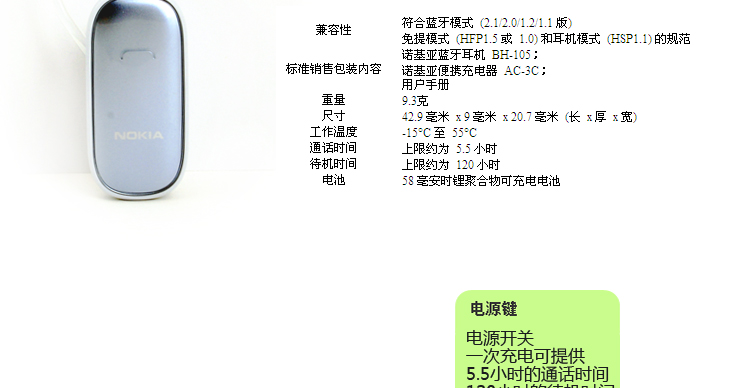 | 诺基亚 BH-105 E71 X6 5530 5800 N86 N97 mini 原装蓝牙耳机