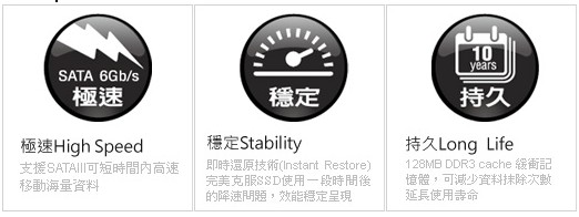 ![]() 128MB DDR3缓冲存储器可更快的读取暂存资料 | 128MB DDR3 cache缓冲存储器 拥有128MB DDR3快取存储器作为暂存缓冲区,DDR3的高速传输界面大幅省下搜寻、读写快闪记体的时间,让资料存取更快速;另一方面大容量的暂存区可减少常更动的资料进到快闪存储器内,减少快闪存储器的抹除次数,延长SSD使用寿命。128MB DDR3 cache缓冲存储器可让SSD更稳定,更能发挥极致效能! |
