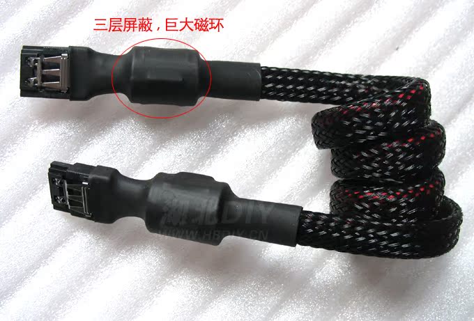 富士康FOXCONN 原厂SATA2 全屏蔽包网极品数据线 双磁环 50CM