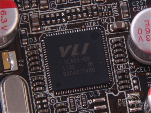 虽说主板很小,但功能方面却一点也没有缩水,该主板配备了一块VLI VL801 USB3.0高速传输芯片便是一种体现。