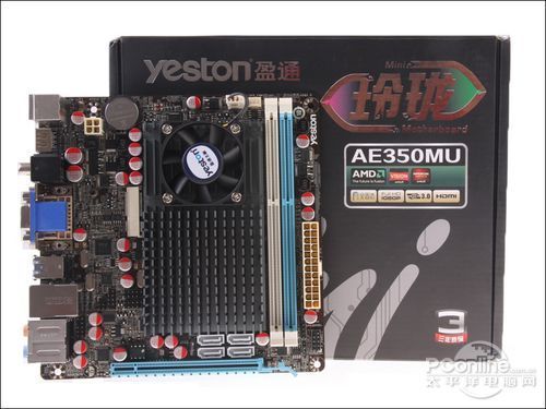 盈通玲珑AE350MU在主板上搭配了AMD A50M(Hudson-M1)芯片组,将E350 APU处理器整合到主板上并为其配备了散热系统,南桥部分也同样配备了散热片及风扇,并与APU的散热系统相连接,整体做工非常不错。支持DX11以及H.264,VC-1和MPEG-2格式的硬件解码,作为HTPC主板非常合适。