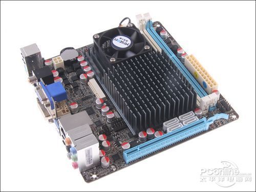 内存部分,由于受板块面积限制,该主板只配备了两条内存插槽,支持DDR3 1066MHz单通道内存,最大容量为16GB。对于观看高清和日常办公来说,基本需求也能满足了。