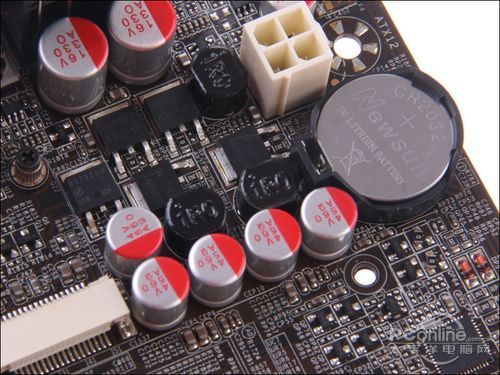 E-350 APU是低功耗的移动级平台,因此在供电方面要求很低。盈通 玲珑AE350MU主板只采用了三相供电,用料上采用全封闭式电感。