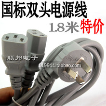 国标三孔3C全铜1拖2电源线 0.75平方 1分2 一分二 1.8米 秒杀特价