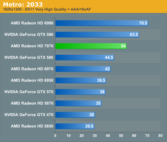 个人不相信。1920x1200 分辨率下,580 SLI 超频后都被虐(MSAA 4X,DOF,Very High),难不成 7970 单卡还 ...