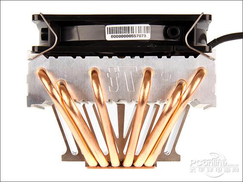 而散热器本身与扣具的固定采用了螺丝固定,上图的扣具为LGA 1156规范。用户可以根据自身平台选择适应自身的扣具。
