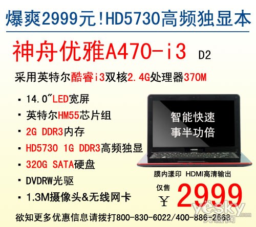 抢购2999!全新全套神舟优雅A470 i3/2G/320G/HD5730高频1G独显本 带票联保