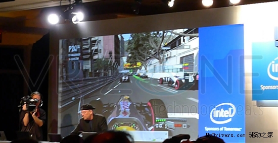 F1 2011是一款DirectX 11 游戏,现场用来展示22nm Ivy Bridge运行DirectX11代码能力。英特尔演示团队可悲的地方是,我们看到VLC播放器多次控制屏幕上显示范围 - 这清楚地证明这不是一个实时运行