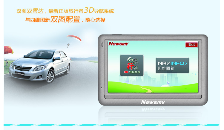 | 双图双雷达,最新正版旅行者3D导航系统与四维图新双图配置。旅行者五年内免费升级,四维图新一年免费升级! |