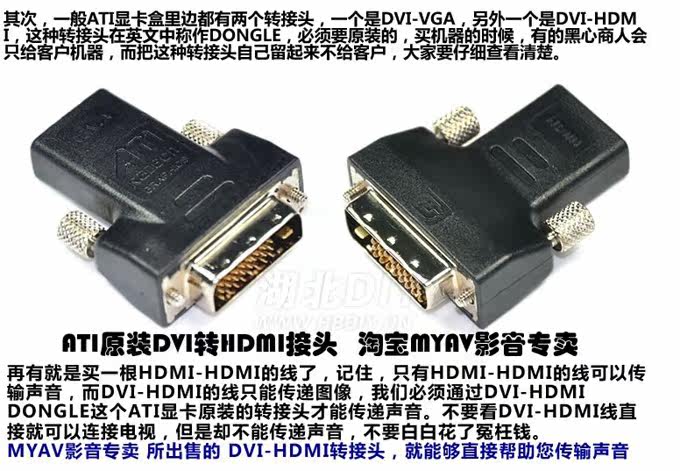 标题: [秒杀] ATI 原装DVI转HDMI转接头 带音频输出,全国最低价!