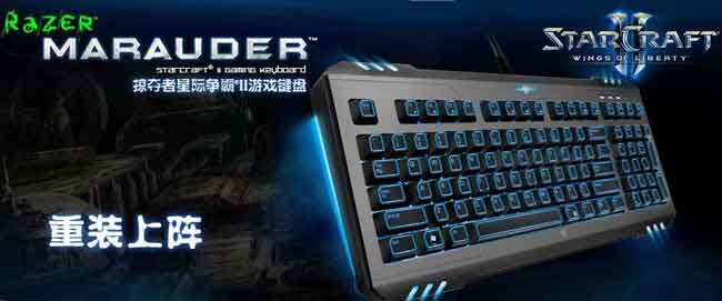 | 专为《星际争霸II:自由之翼》(StarCraft II? Wings of Liberty?)游戏打造的Razer Marauder掠夺者星际争霸II游戏键盘是一款功能完善且适用于电子竞技赛事的键盘,造型十分轻薄精巧。Razer Marauder 掠夺者的抬高式按键可完美执行快速指令并改善游戏中的表现。您改善后的游戏表现将由一个全新的 APM(每分钟动作数)灯光系统监控,通过变化色调提供实时的表现反馈,带给您完全沉浸其中的游戏体验。在专属的on-the-fly飞敏宏录制系统的强化下,Razer Marauder掠夺者的游戏最佳化设计可真实反映星际争霸II的世界,并增进玩家们的游戏体验。 | |