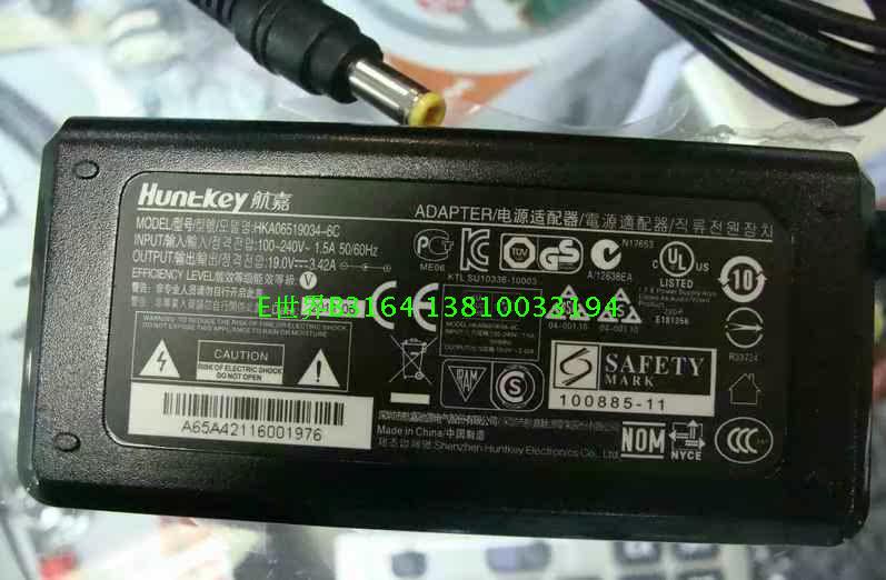 原装航嘉适配器19V/3.42A(65W)主板笔记本通用HKA06519034-6C 特价65元