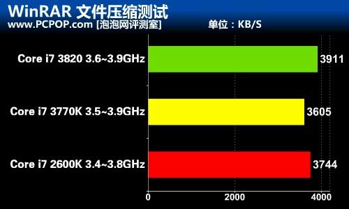 处理器浮点运算性能上3770K相当强劲,尽管主频要低于3820,但是实际测试成绩却更好。