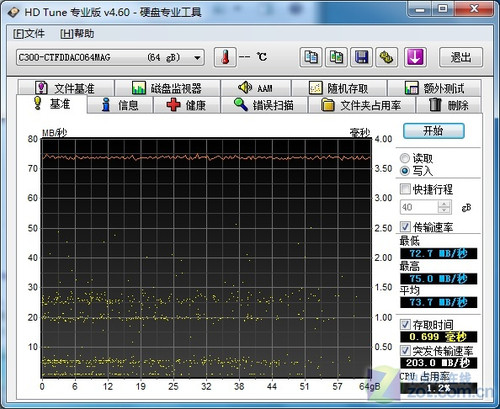 HD Tune平均写入速度测试